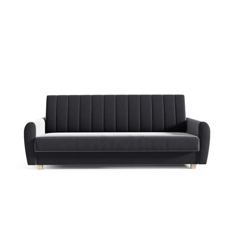 Pevná konstrukce ze dřeva a OSB desky. Potah z kvalitní látky Kronos. Snadné rozkládání pohovky na lůžkovou podobu. Moderní skandinávský design vhodný do všech současných interiérů. Součástí pohovky je úložný prostor.