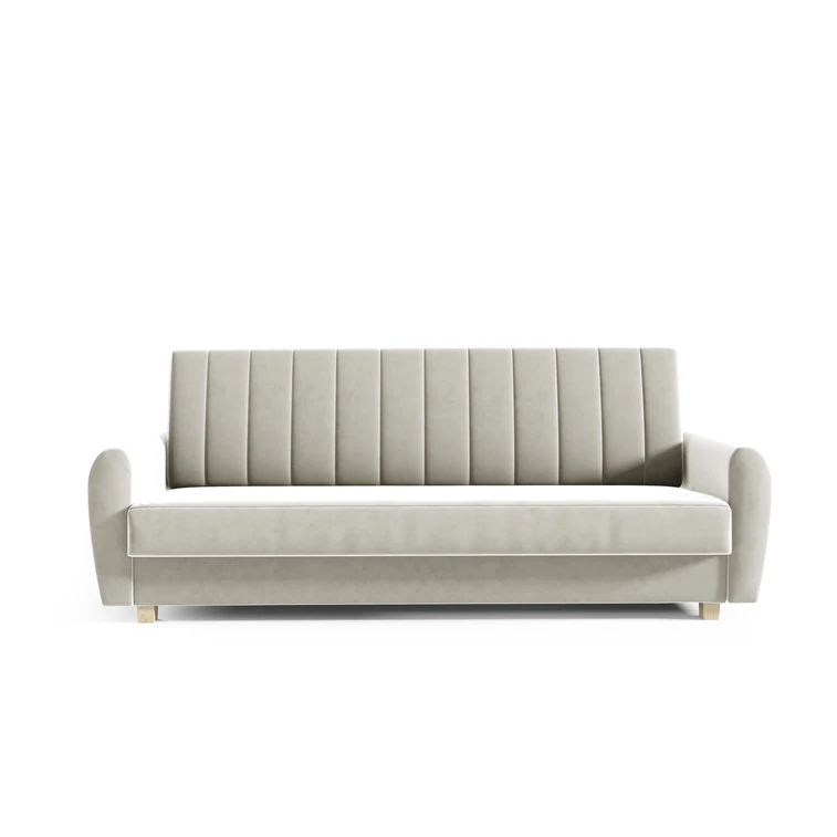 Pevná konstrukce ze dřeva a OSB desky. Potah z kvalitní látky Kronos. Snadné rozkládání pohovky na lůžkovou podobu. Moderní skandinávský design vhodný do všech současných interiérů. Součástí pohovky je úložný prostor.