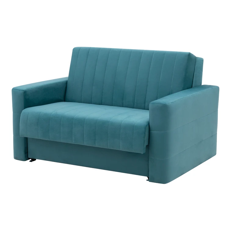 Rozkládací pohovka DOMO 2. Pevná konstrukce ze dřeva a OSB desky. Prošívaný podsedák. Snadné rozkládání pohovky na lůžkovou podobu.