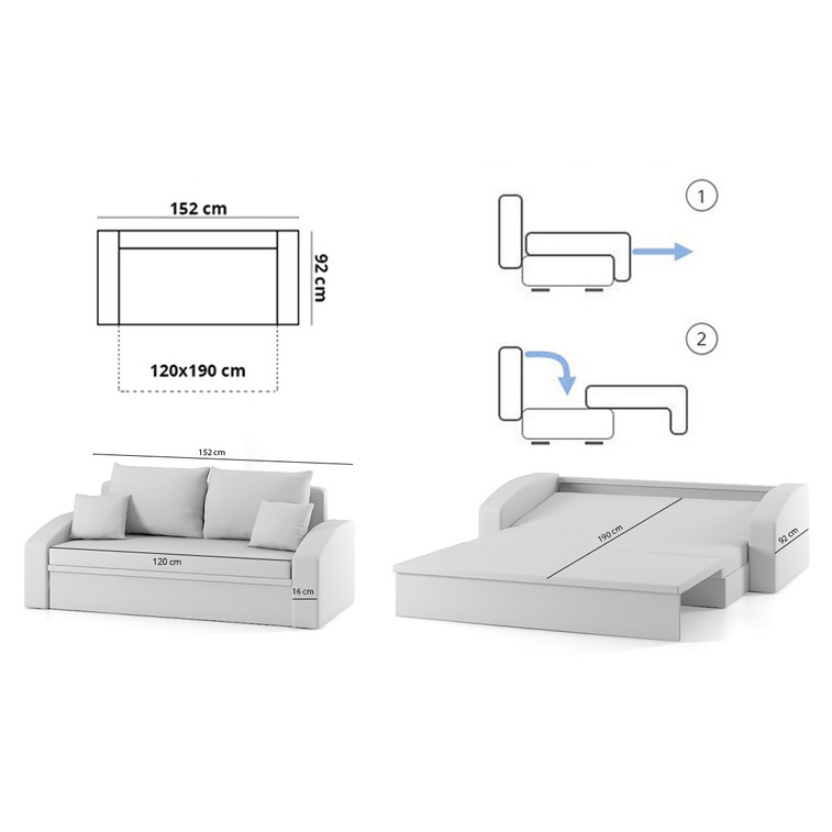 Rozkládací pohovka HEWLET. Pevná konstrukce ze dřeva a OSB desky. Potah z kvalitní látky Haiti v mnoha moderních barevných odstínech. Snadné rozkládání pohovky na lůžkovou podobu. Moderní design vhodný do všech současných interiérů.