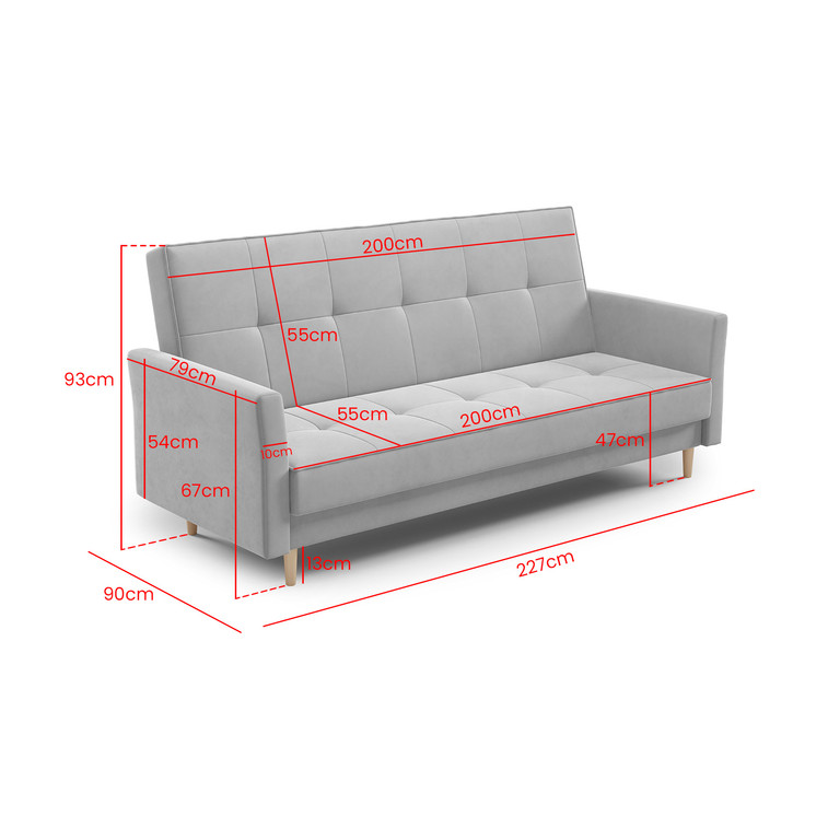 Pevná konstrukce ze dřeva a OSB desky. Potah z kvalitních látek v mnoha moderních barevných odstínech. Snadné rozkládání pohovky na lůžkovou podobu. Moderní design vhodný do všech současných interiérů.