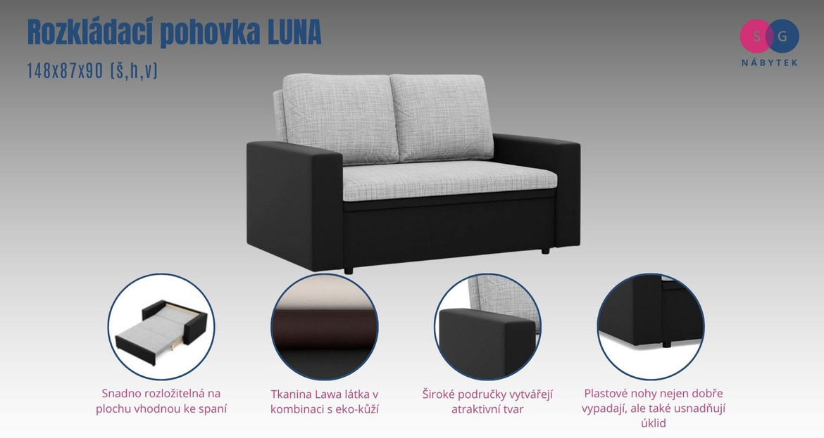 Pohovka je moderní a stylový kus nábytku, který byl navržen s ohledem na lidi kteří oceňují pohodlí a funkčnost. Je vyrobeno z pevných, vysoce kvalitních materiálů. Nohy jsou vyrobeny z plastu.