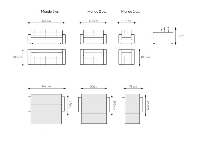 Kvalitní a moderní rozkládací pohovka MONDO 2. Prošívaný podsedák. Snadné rozkládání pohovky na lůžkovou podobu.