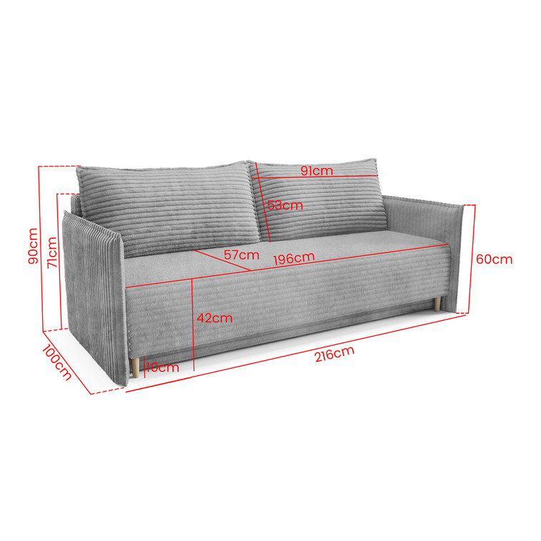 Pevná konstrukce ze dřeva a OSB desky. Potah z kvalitní látky Haiti v mnoha moderních barevných odstínech. Snadné rozkládání pohovky na lůžkovou podobu. Moderní design vhodný do všech současných interiérů.