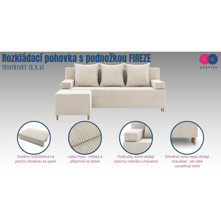 Rozkládací pohovka s podnožkou FIREZE - poso