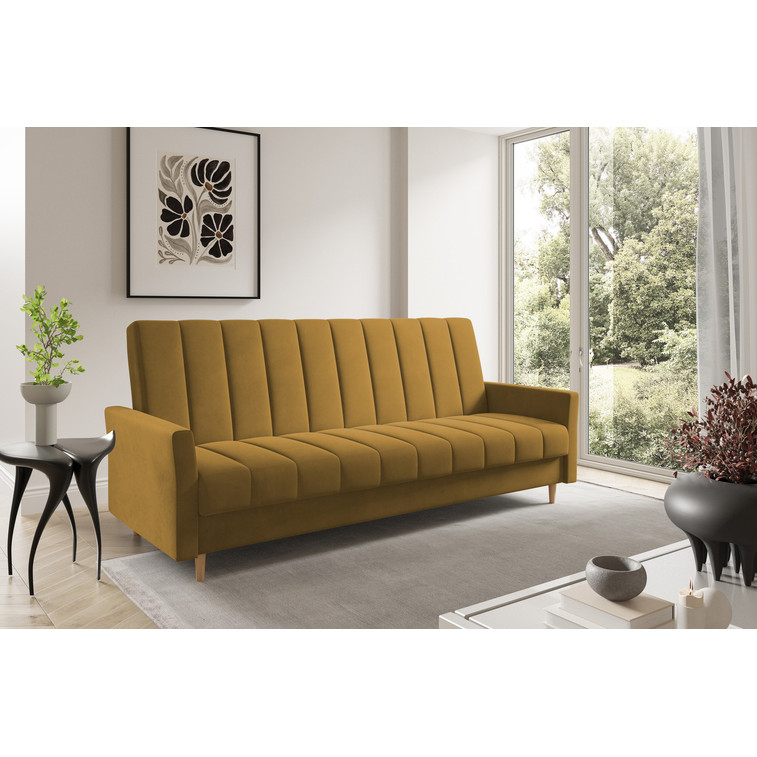 Pevná konstrukce ze dřeva a OSB desky. Potah z kvalitních látek v mnoha moderních barevných odstínech. Snadné rozkládání pohovky na lůžkovou podobu. Moderní design vhodný do všech současných interiérů.
