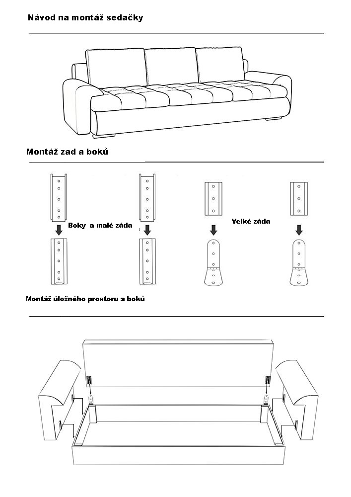 - snadné rozkládání pohovky na lůžkovou podobu