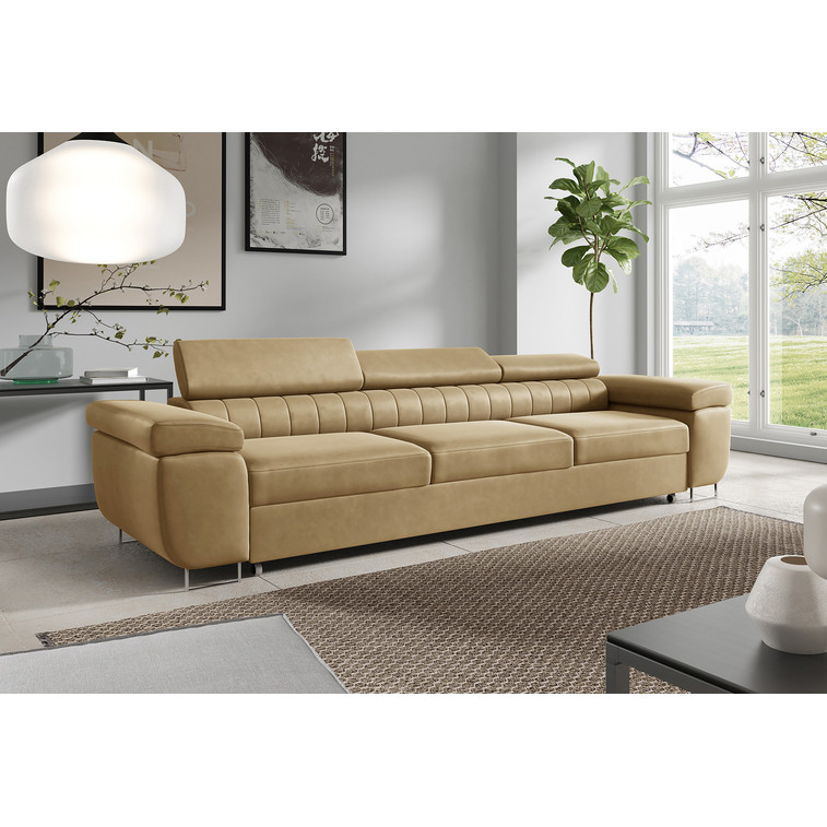 Pevná konstrukce ze dřeva a OSB desky. Potah z kvalitní tkaniny v mnoha moderních barevných odstínech. Snadné rozkládání pohovky na lůžkovou podobu. Moderní design vhodný do všech současných interiérů.