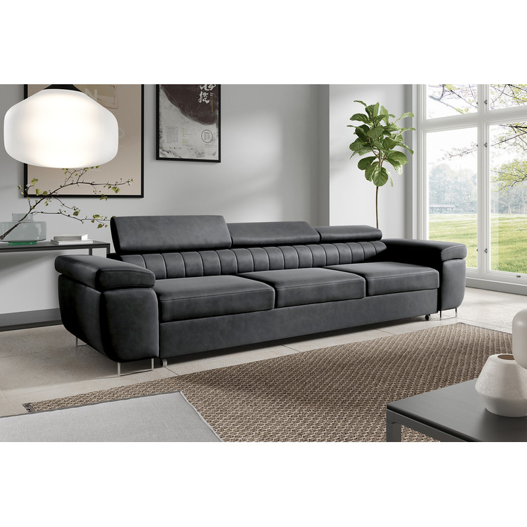 Pevná konstrukce ze dřeva a OSB desky. Potah z kvalitní tkaniny v mnoha moderních barevných odstínech. Snadné rozkládání pohovky na lůžkovou podobu. Moderní design vhodný do všech současných interiérů.