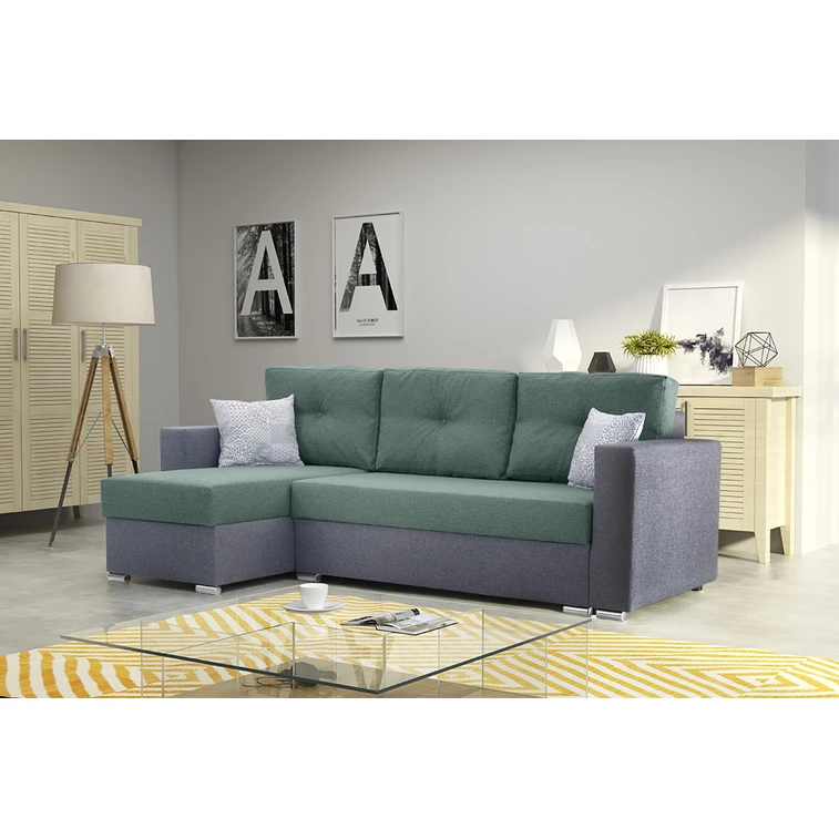 Rozkládací rohová sedací souprava 102 AIDEN Levá Tmavě šedá+zelená