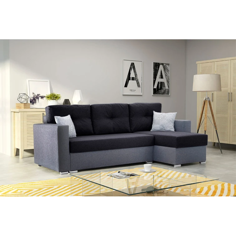Rozkládací rohová sedací souprava 102 AIDEN Pravá Tmavě šedá+černá