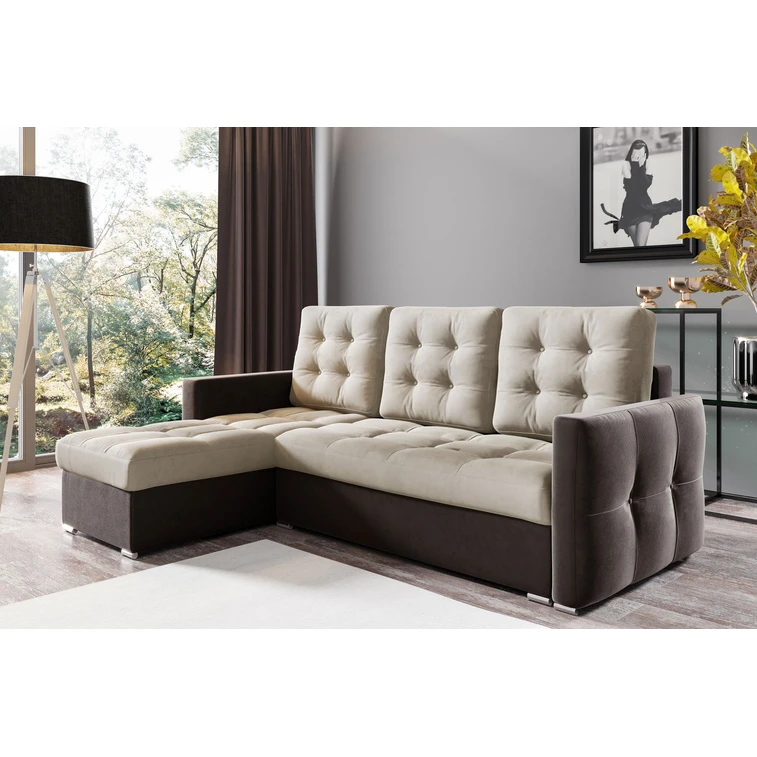 Rozkládací rohová sedací souprava 103 MATTHEW Levá Krémová+hnědá