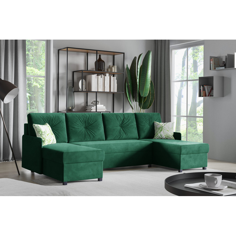 Sedací souprava má 2 úložné prostory pod sedáky.