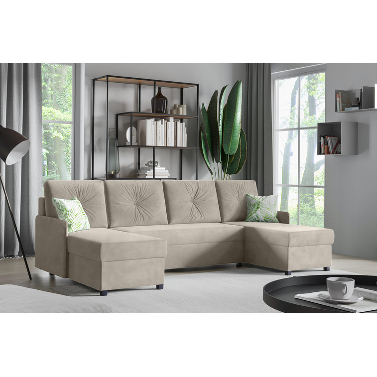 Rozkládací rohová sedací souprava 108U DAVID Krémová