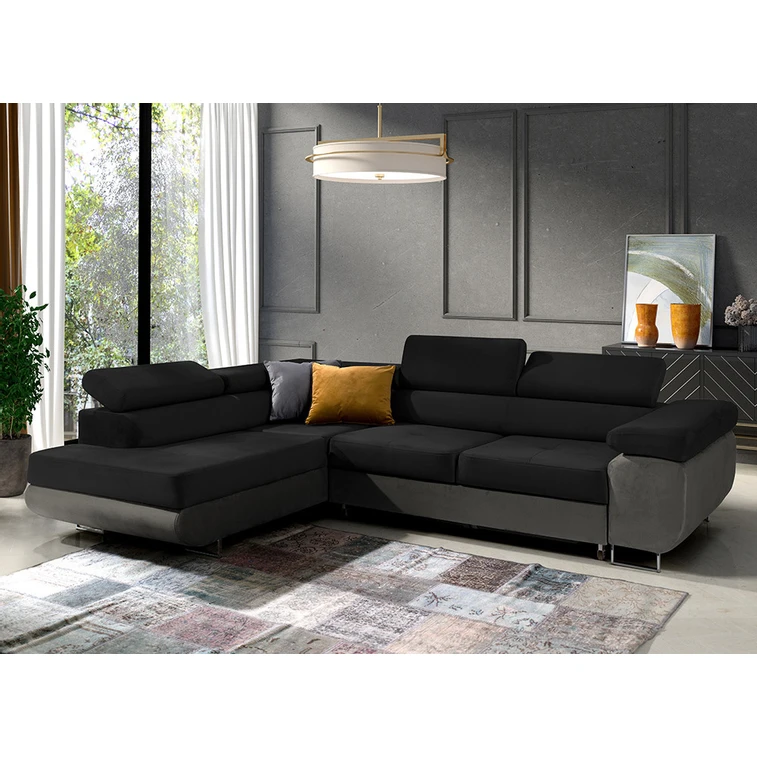 Rozkládací rohová sedací souprava 150 ETHAM Levá Černá/tmavě šedá