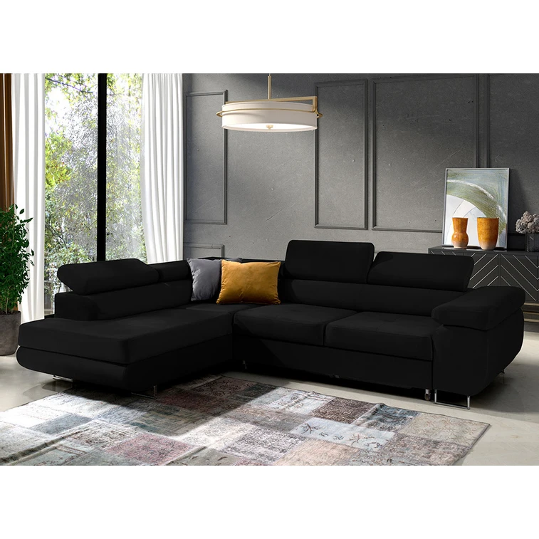 Rozkládací rohová sedací souprava 150 ETHAM Levá Černá