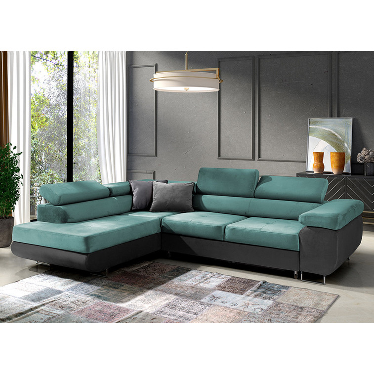 Rozkládací rohová sedací souprava 150 ETHAM Levá Tmavě tyrkysová/šedá