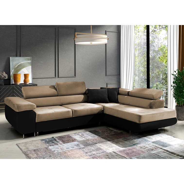 Rozkládací rohová sedací souprava 150 ETHAM Pravá Béžová/černá