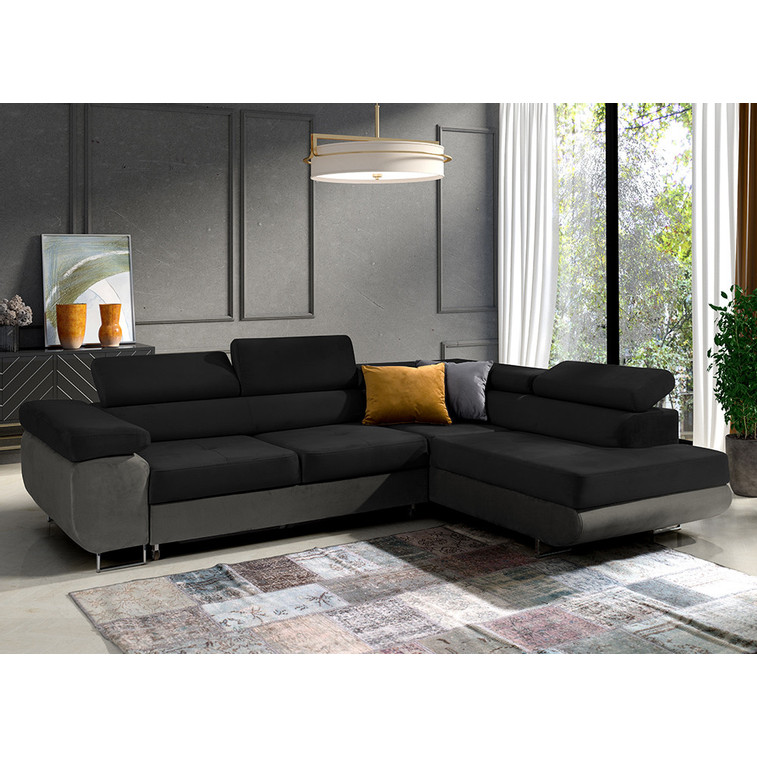 Rozkládací rohová sedací souprava 150 ETHAM Pravá Černá/tmavě šedá