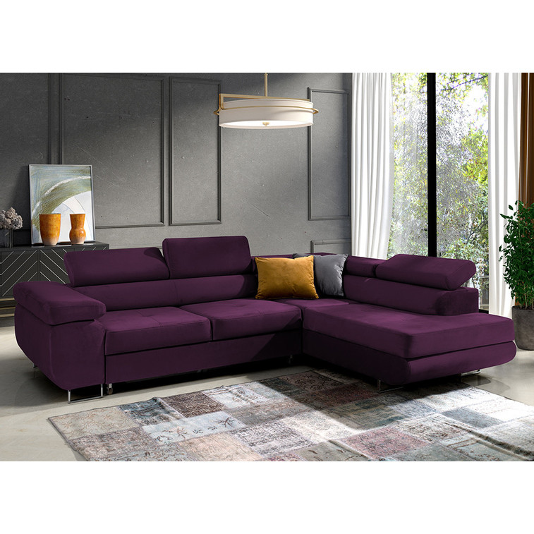 Rozkládací rohová sedací souprava 150 ETHAM Pravá Fialová