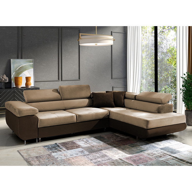 Rozkládací rohová sedací souprava 150 ETHAM Pravá Hnědá/béžová