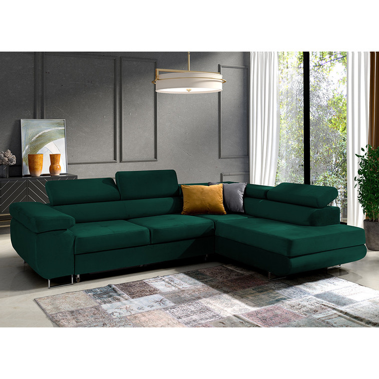 Rozkládací rohová sedací souprava 150 ETHAM Pravá Tmavě zelená