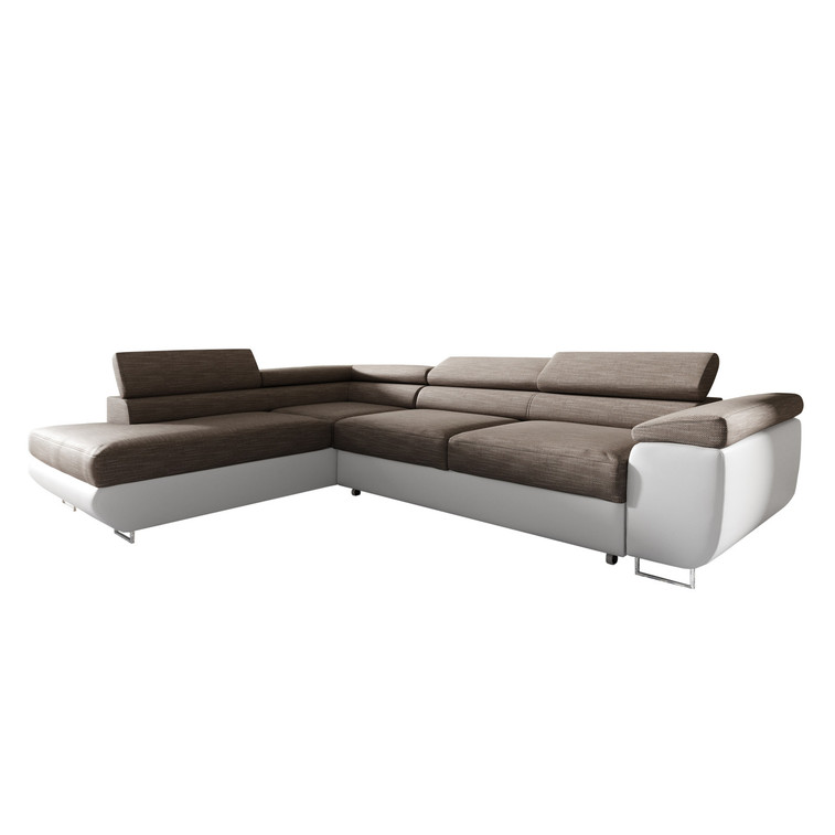 Rozkládací rohová sedací souprava 151 ALEXANDR Levá Hnědá+bílá eko kůže