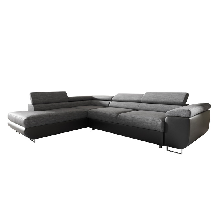 Rozkládací rohová sedací souprava 151 ALEXANDR Levá Šedá+černá eko kůže