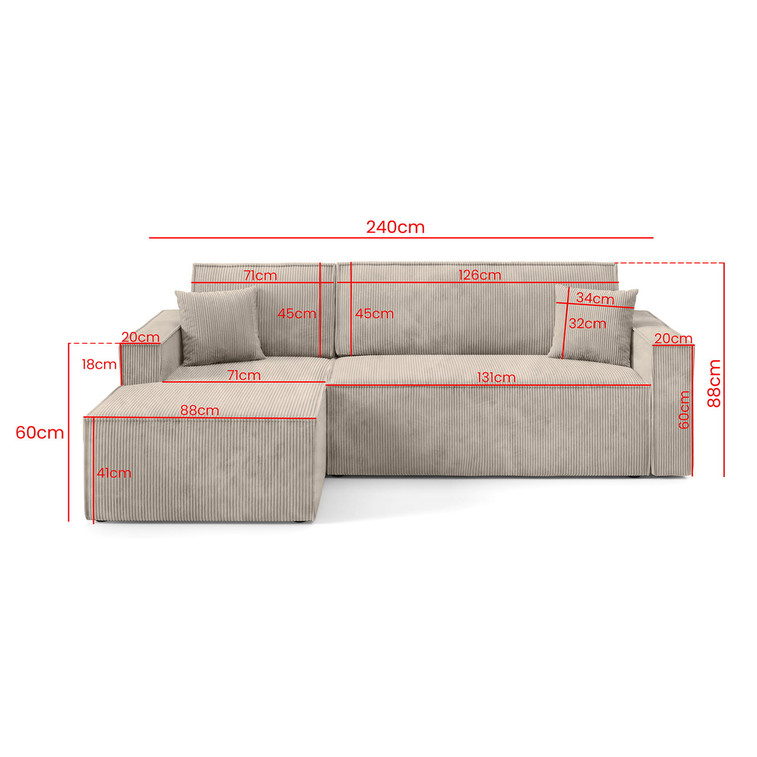 Pevná konstrukce ze dřeva a OSB desky. Snadné rozkládání pohovky na lůžkovou podobu. Moderní design vhodný do všech současných interiérů.