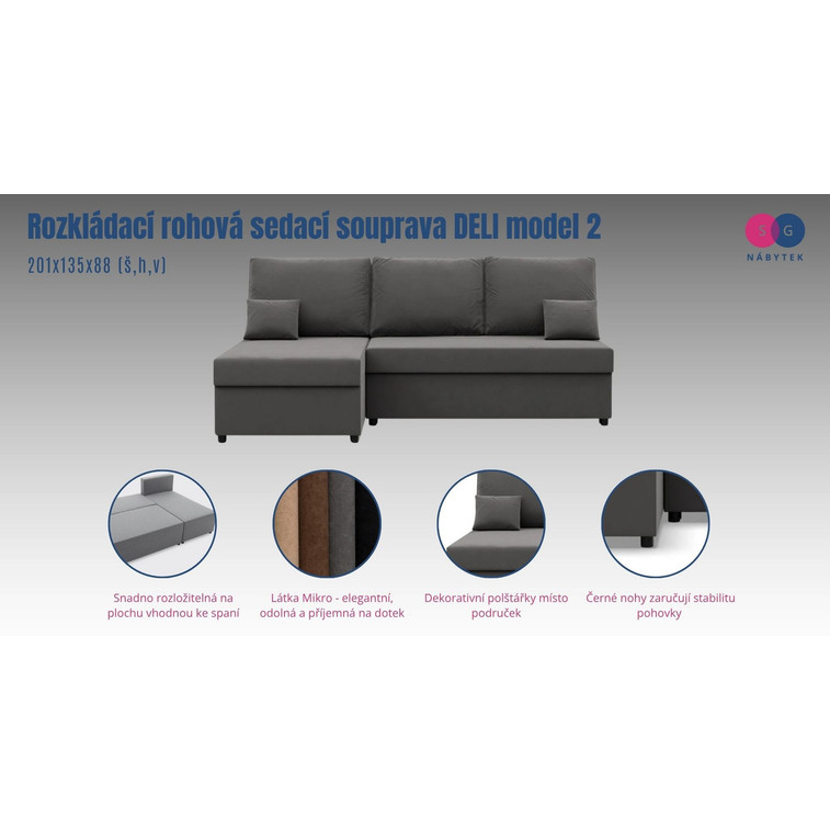 Rozkládací rohová sedací souprava Deli model 2.