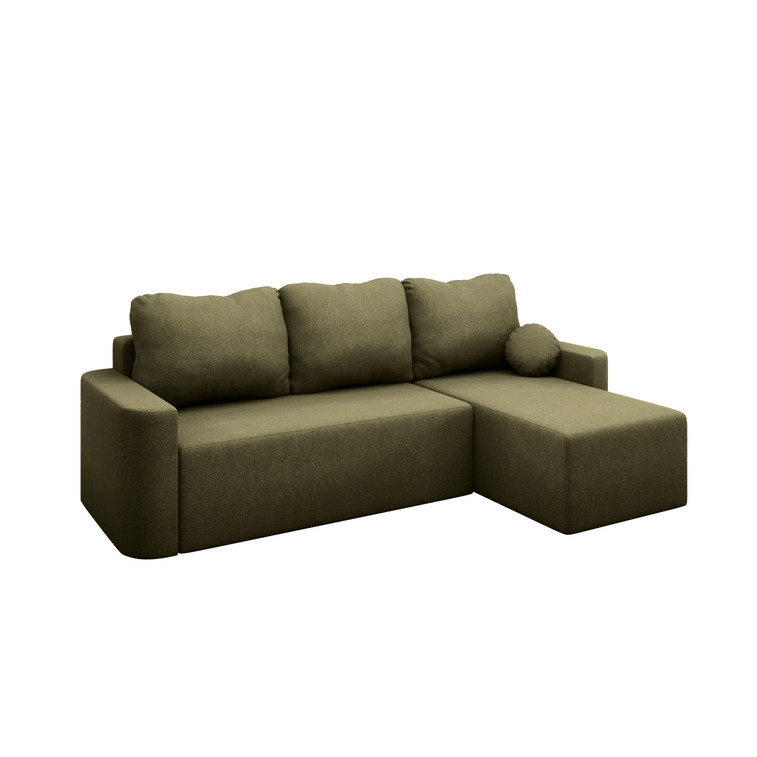 Rozkládací rohová sedací souprava ENZO je moderní a stylová, byla navržena s ohledem na lidi kteří oceňují pohodlí a funkčnost. Je vyrobena z pevných, vysoce kvalitních materiálů. Nohy jsou vyrobeny z plastu.