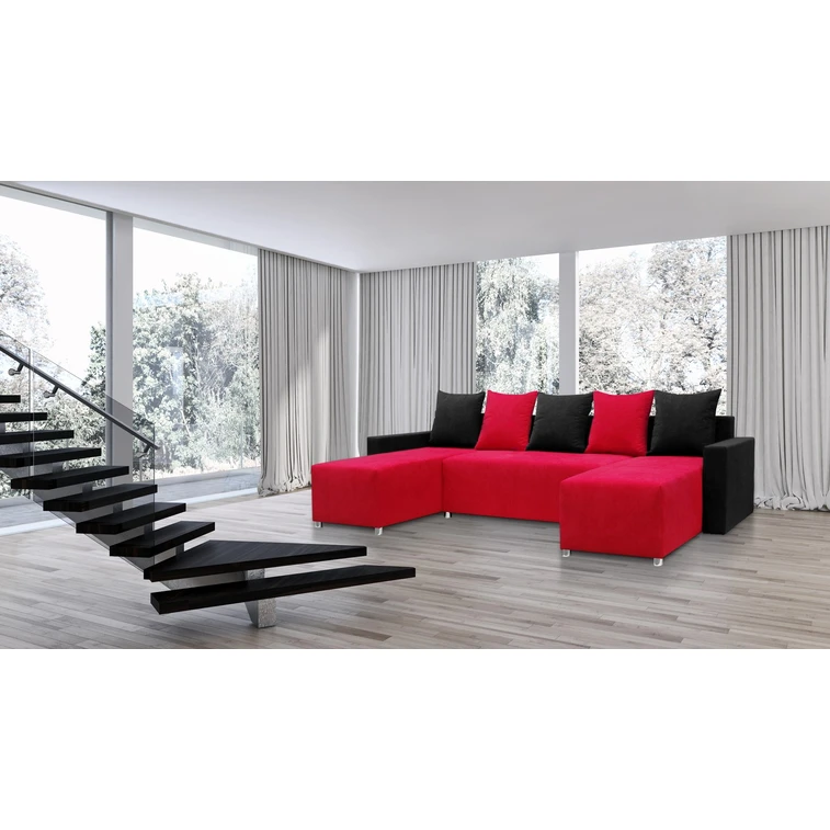 Rozkládací rohová sedací souprava FILIP 4 Červená/černá