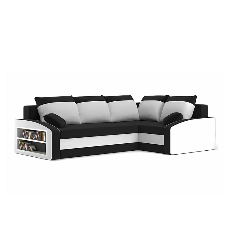 Rozkládací rohová sedací souprava GRANDE s poličkou model 2 Pravá Černá/bílá