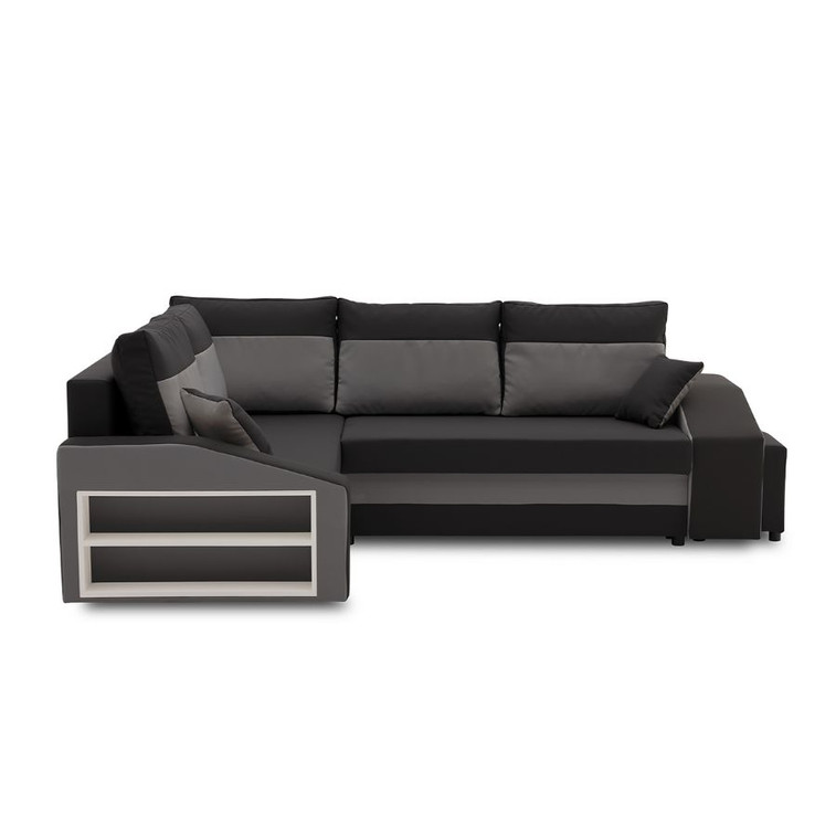 Pevná konstrukce ze dřeva a OSB desky. Potah z kvalitní látky v mnoha moderních barevných odstínech. Snadné rozkládání pohovky na lůžkovou podobu. Praktické taburety + poličky v boku sedačky. Moderní design vhodný do všech současných interiérů