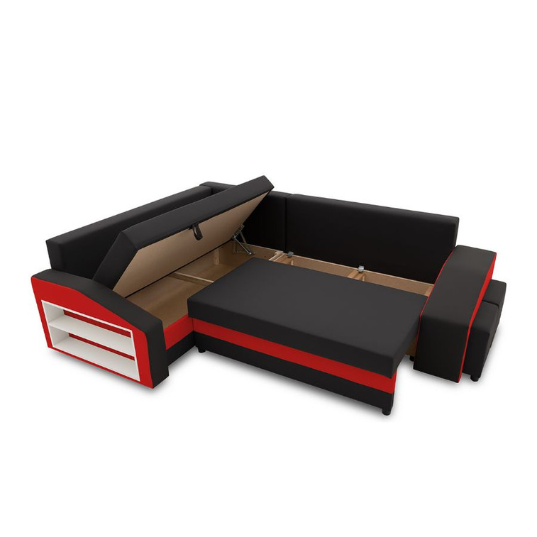 Rozkládací rohová sedací souprava GRANDE s taburety a poličkou model 2 Levá v-ne-mik15-22