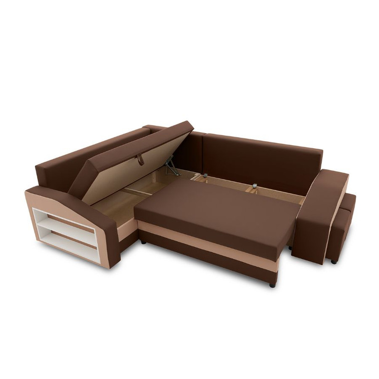 Rozkládací rohová sedací souprava GRANDE s taburety a poličkou model 2 Levá v-ne-mik20-48