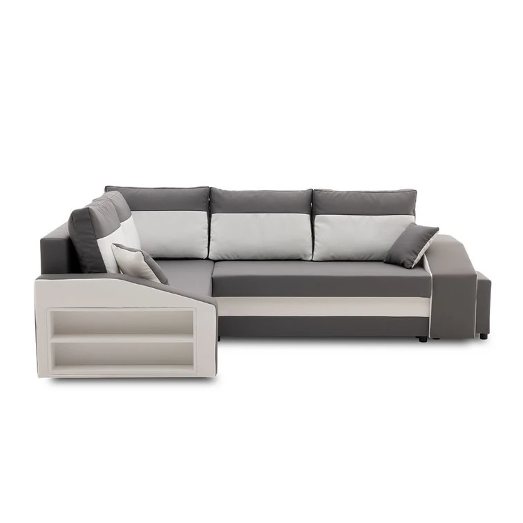 Pevná konstrukce ze dřeva a OSB desky. Potah z kvalitní látky v mnoha moderních barevných odstínech. Snadné rozkládání pohovky na lůžkovou podobu. Praktické taburety + poličky v boku sedačky. Moderní design vhodný do všech současných interiérů