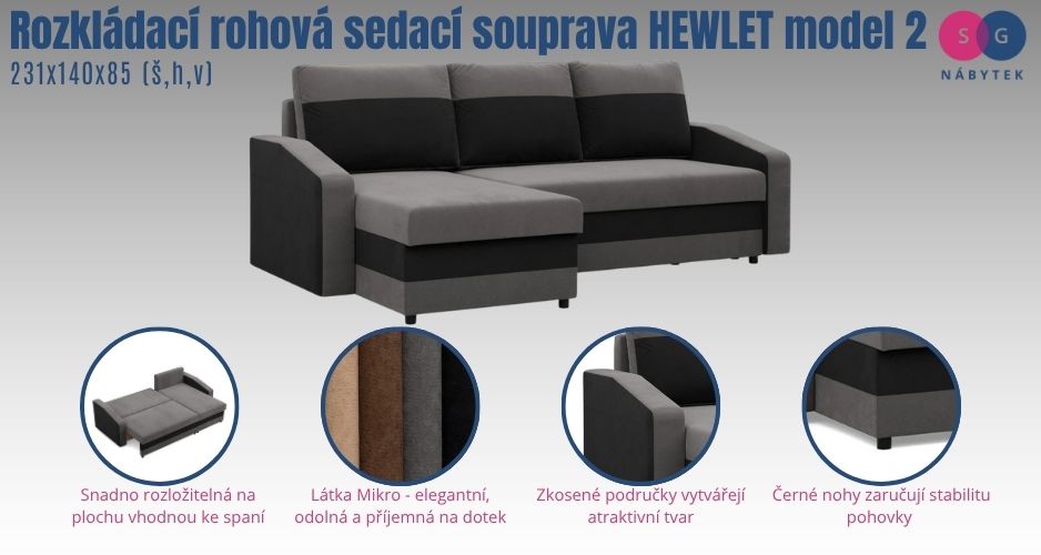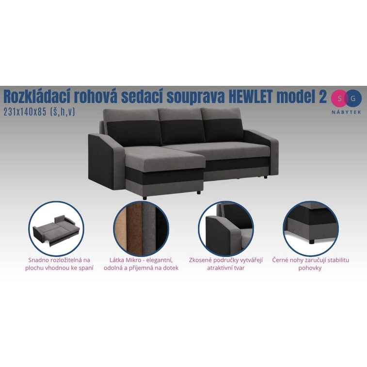 Rohová rozkládací sedací souprava HEWLET model 2.