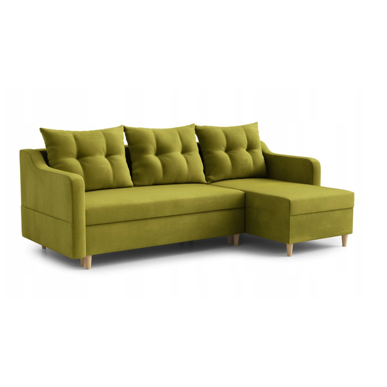 K výrobě byla použita vysoce pružná pěna T30 a bonellová pružina, díky které je sedák velmi pohodlný. Nábytek má zásobník na lůžkoviny a velké pohodlné polštáře. Prvky z masivního dřeva použité v rámu zvyšují odolnost a pevnost celé konstrukce, což se následně promítne do mnoha let bezproblémového používání. Sedačka se velmi snadno montuje a rozkládá, její montáž zabere jen pár minut. Prošívané polštáře a tvarovaná područka s funkční kapsou ji odlišují od ostatních rohových sedaček.