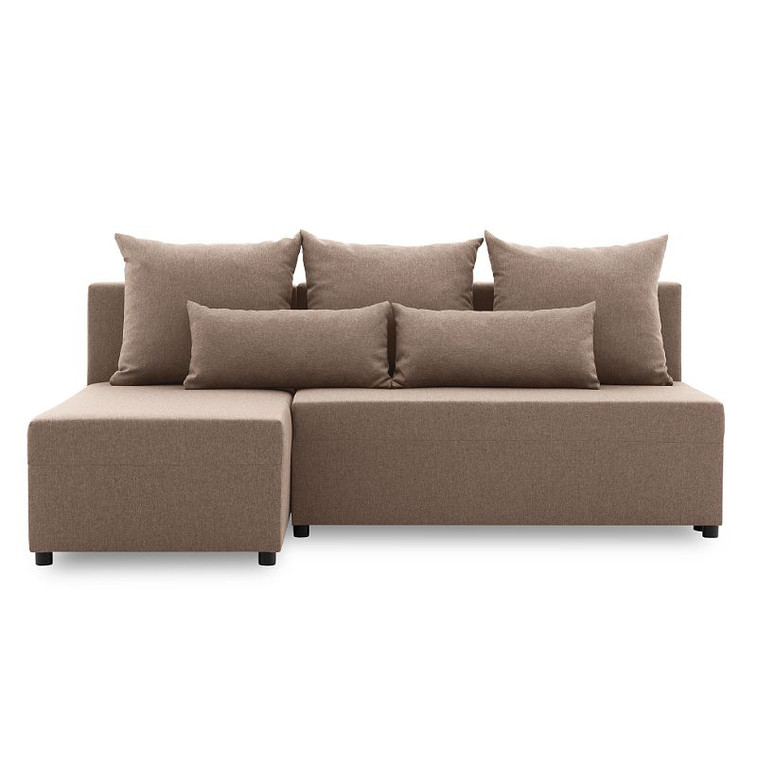 Pevná konstrukce ze dřeva a OSB desky. Potah z kvalitní látky Lux v mnoha moderních barevných odstínech. Možnost zvolení levé nebo pravé varianty. Snadné rozkládání pohovky na lůžkovou podobu. Praktické taburety jsou umístěny v bočnicích sedačky. Moderní design vhodný do všech současných interiérů.