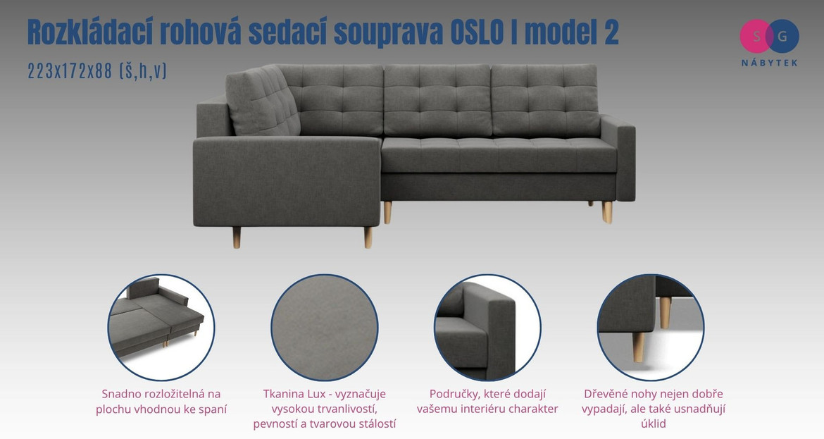 Rozkládací rohová sedací souprava OSLO I model 2.