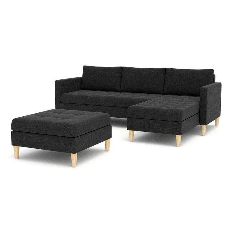 Rozkládací rohová sedací souprava Oslo s velkým taburetem. Pevná konstrukce ze dřeva a OSB desky. Potah z kvalitní tkaniny v mnoha moderních barevných odstínech. Sedací část je prošívaná. Snadné rozkládání sedačky na lůžkovou podobu. Moderní skandinávský design vhodný do všech současných interiérů.
