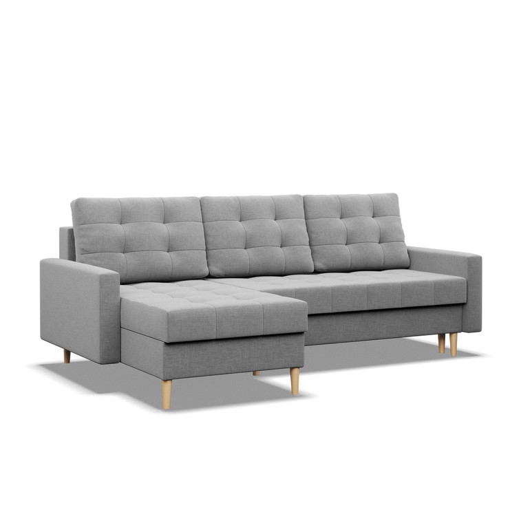 Pevná konstrukce ze dřeva a OSB desky. Potah z kvalitní látky Lux v moderních barevných odstínech. Při montáži monžnost zvolení levé nebo pravé strany. Snadné rozkládání pohovky na lůžkovou podobu. Moderní skandinávský design vhodný do všech současných interiérů.
