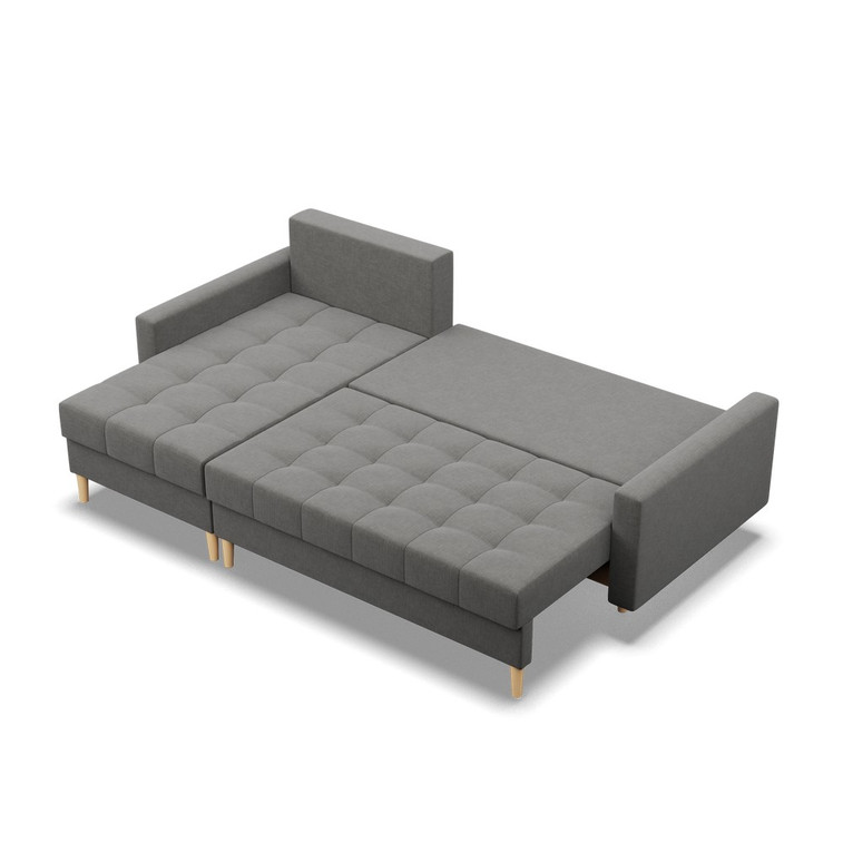 Pevná konstrukce ze dřeva a OSB desky. Potah z kvalitní látky Lux v moderních barevných odstínech. Při montáži monžnost zvolení levé nebo pravé strany. Snadné rozkládání pohovky na lůžkovou podobu. Moderní skandinávský design vhodný do všech současných interiérů.