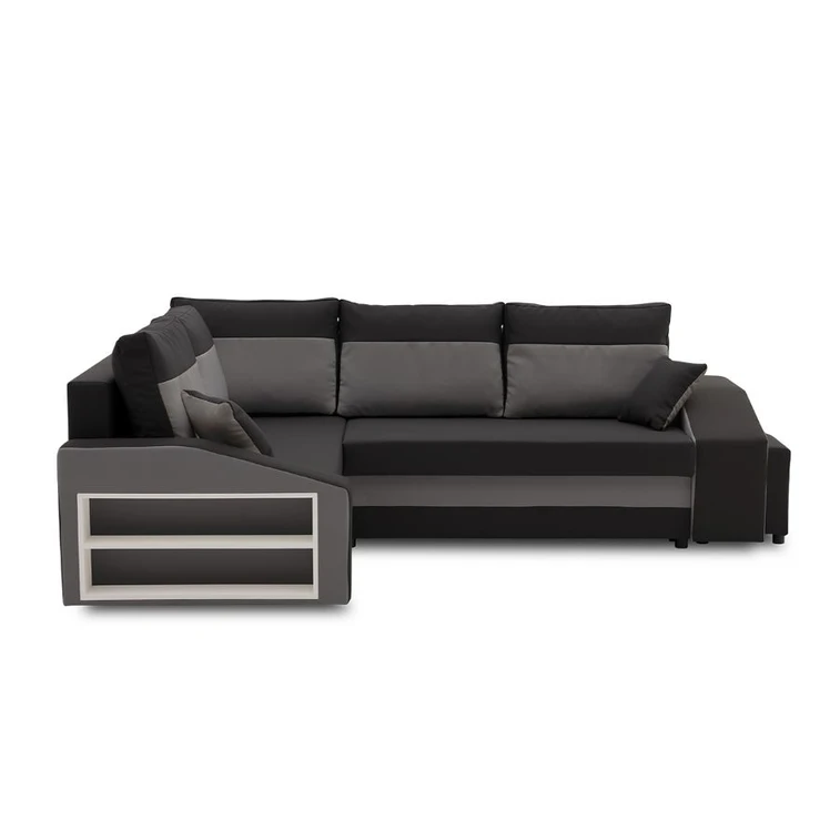 Rozkládací rohová sedací souprava s taburety a poličkou GRANDE micro Levá Černá/šedá