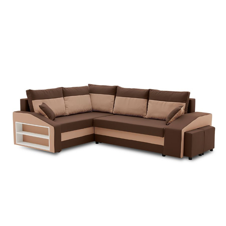 Rozkládací rohová sedací souprava s taburety a poličkou GRANDE micro Levá Hnědá
