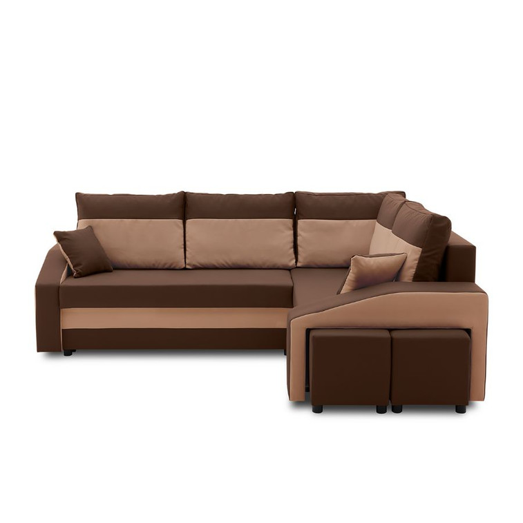 Rozkládací rohová sedací souprava s taburety a poličkou GRANDE micro Pravá Hnědá