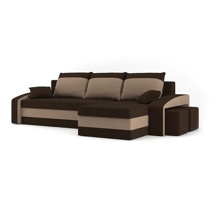 Rozkládací rohová sedací souprava s taburety HEWLET Hnědá/cappucino Pravá