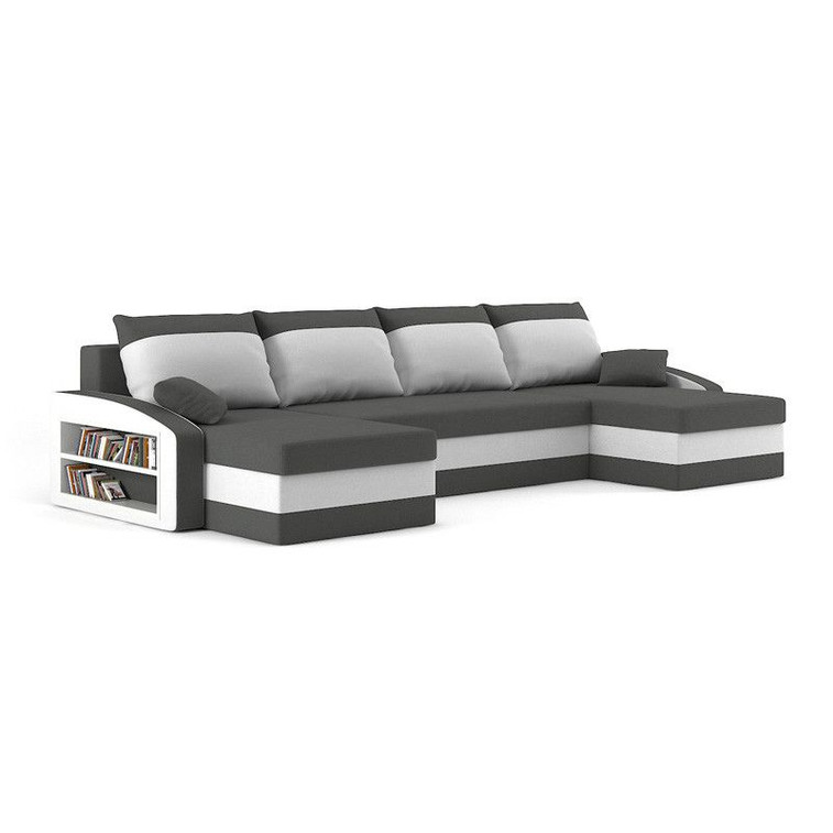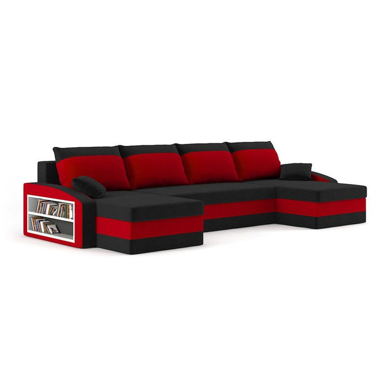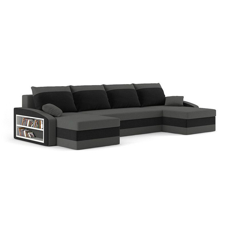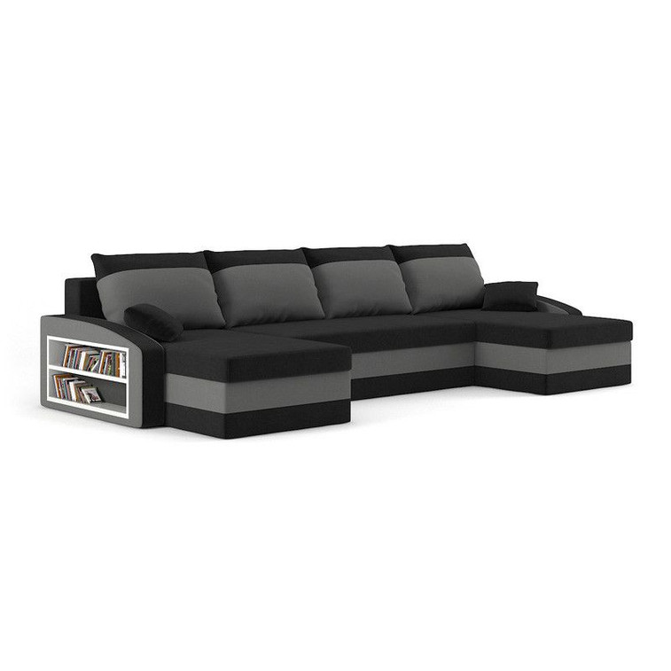 Rozkládací rohová sedací souprava SPARTAN s poličkou model 2 Černá/šedá