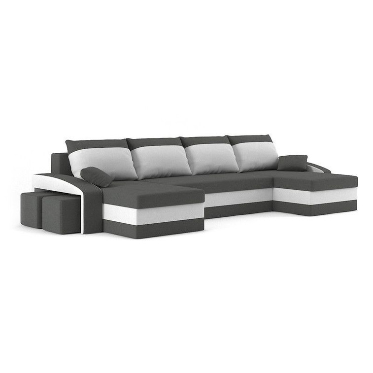 Rozkládací rohová sedací souprava SPARTAN s taburety model 2 Šedá/bílá